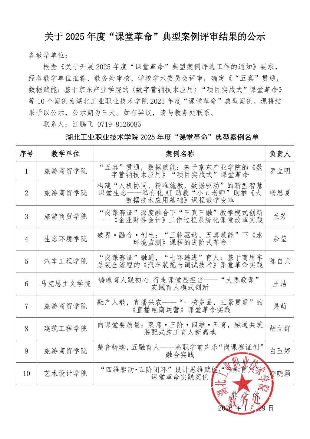 关于2025年度“课堂革命”典型案例评审结果的公示